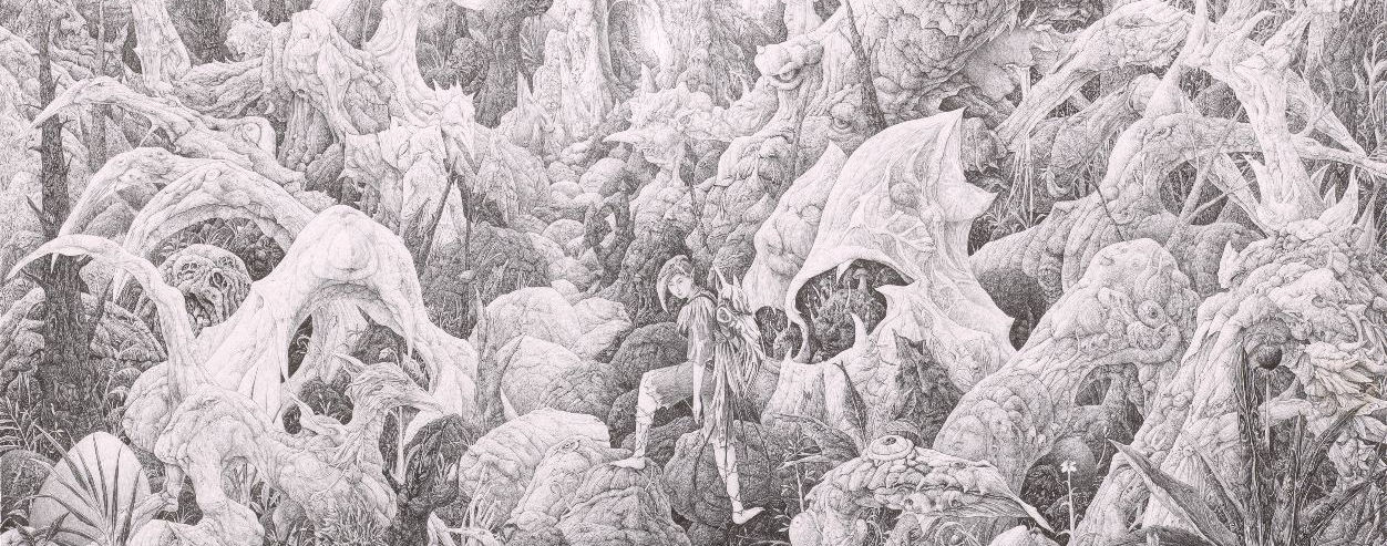 Japanese artist living in Langtang Nepal and Tokyo Japan. Mizo started making ink drawings using Japanese brush pens since he was 14 years old. His media is black dye ink brush pen on “Kent” paper board by Orion Inc. and Muse Inc. He has immersed himself in the world of extreme intricate art which is not possible by any other media. His aim is to create uncompromising works which is beautiful seen from a great distance or up close. His life-long theme is to express, in his own way, the overwhelming beauty of nature and the people living in the severity of it.